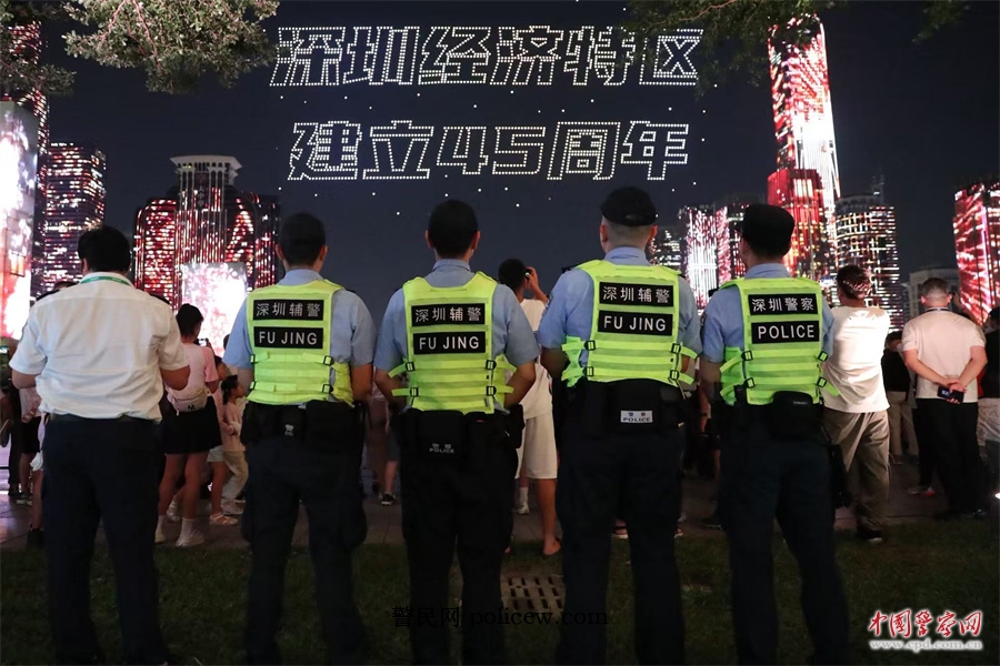 深圳公安民警辅警开展灯光秀安保执勤。