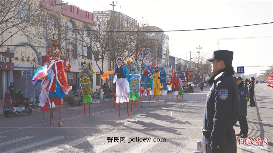 3月3日,土默特左旗公安局民警辅警在毕克齐镇非遗民俗“脑阁”表演活动中执勤。刘志林 摄