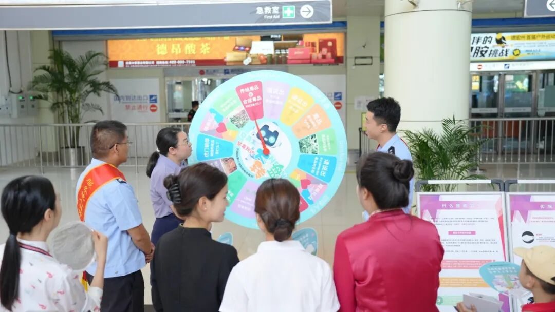 “无毒驿站”驻机场:在机场出发、到达口设立流动服务站,利用参与性较强的转盘游戏,让旅客们在游戏中了解禁毒知识;设计精美实用的“无毒旅程”宣传展架,提供快速减压小技巧,帮助缓解旅途焦虑,远离“药物提神”陷阱。