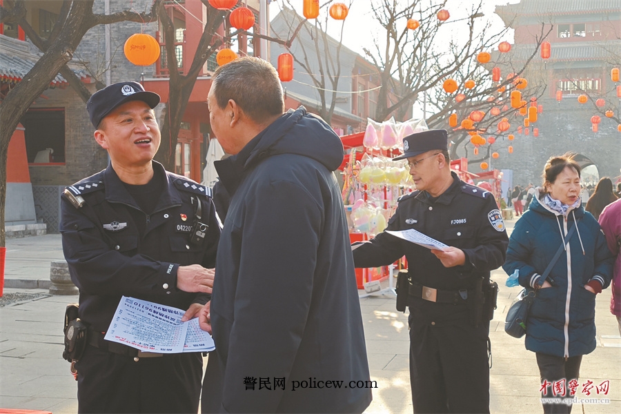“民警帮了大忙。他们帮忙维护秩序,我们心里很踏实。”北京宛城新景文化有限责任公司副总经理侯培栋介绍,从宛平城升级改造到开园迎客,民警全天候驻场,及时调解纠纷,定期开展应急演练,宣传安全知识,全力守护一方平安。