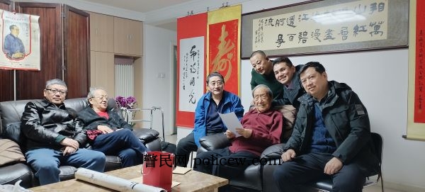 2026年3月1日元宵节前夕,中国社会主义文艺学会名誉会长李正忠、顾问祝东力、会长鲁太光、常务副会长易孟林、办公室副主任谢育云一行专程探望了101岁文艺大家、著名诗人、中宣部原副部长、原文化部代部长贺敬之,向他表达2026年的新春祝福。